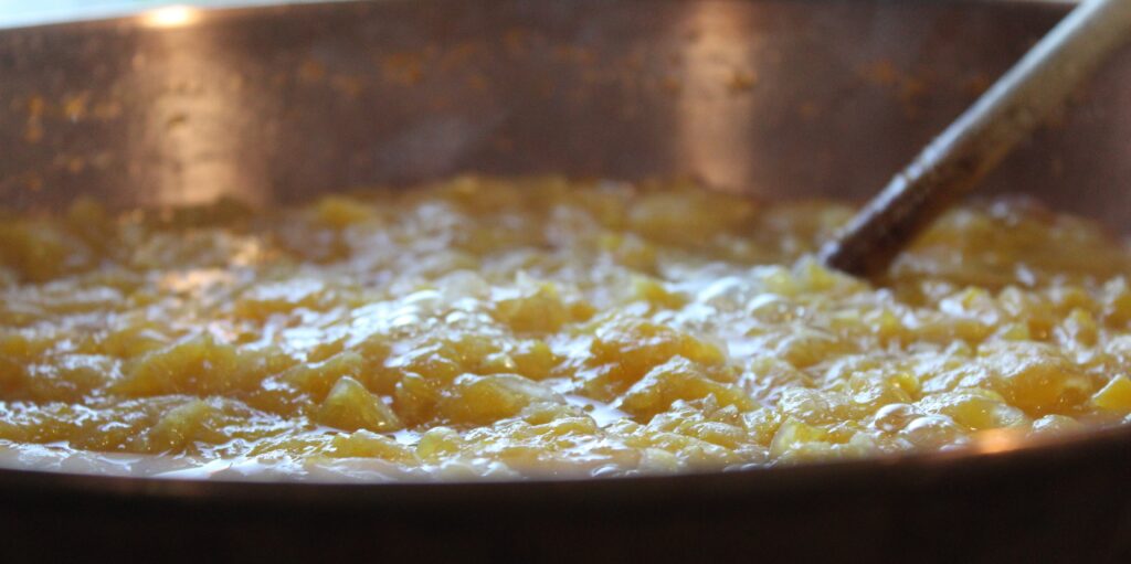 Mes confitures sont préparées de façon artisanale, cuites au chaudron de cuivre, préparées avec 70g de fruits pour 100g de confiture.